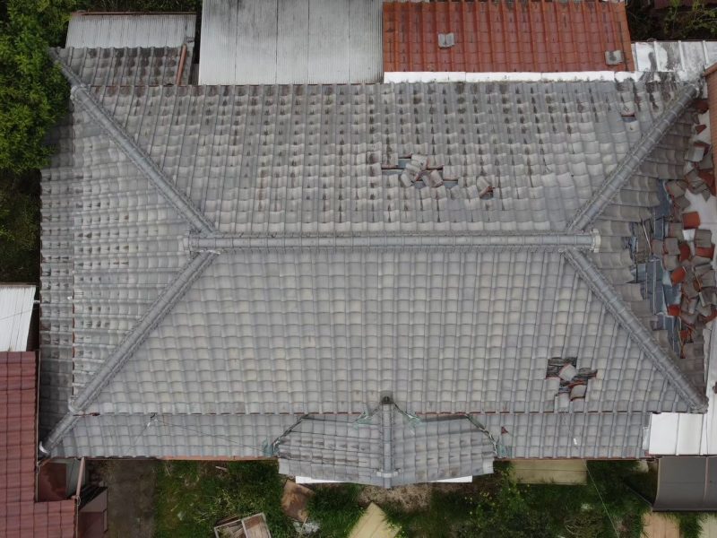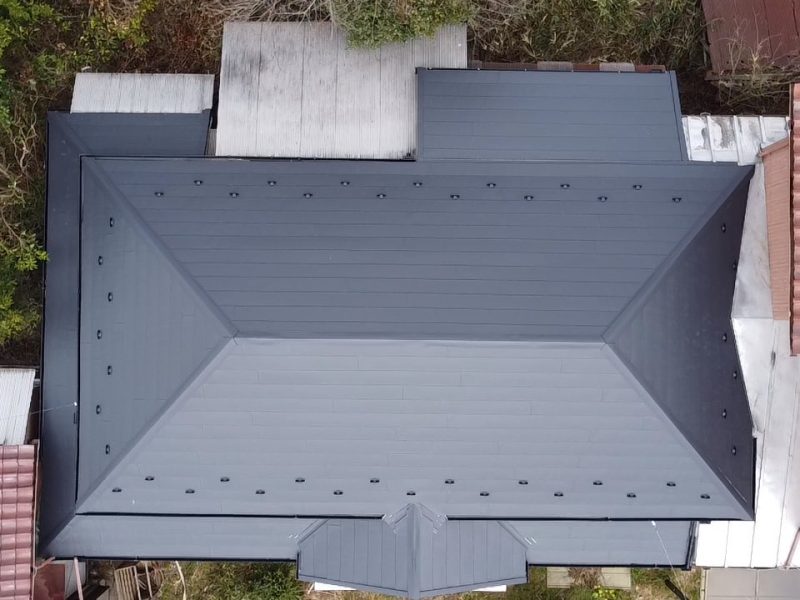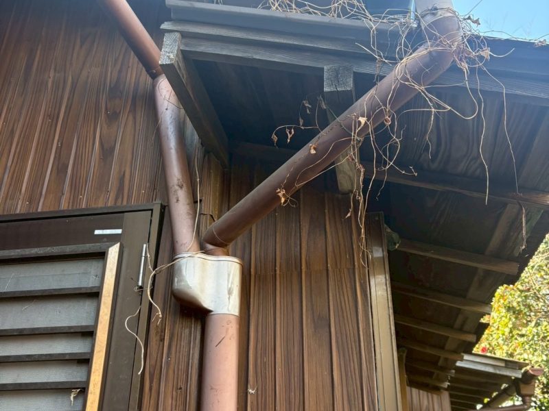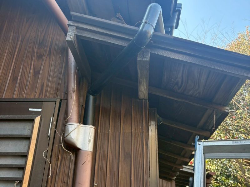 袖ケ浦市永地 施工内容 屋根工事、付帯部工事/雨樋交換 メーカー セキノ興産パナソニック 使用材料 屋根:ダンネツトップ6-1ワイド、雨樋:PC50 屋根の色 KSH27H黒 壁の色 色系統 黒系 ハウスメーカー 大工 屋根葺き替え工事 BEFORE AFTER 付帯部工事/雨樋交換 BEFORE AFTER